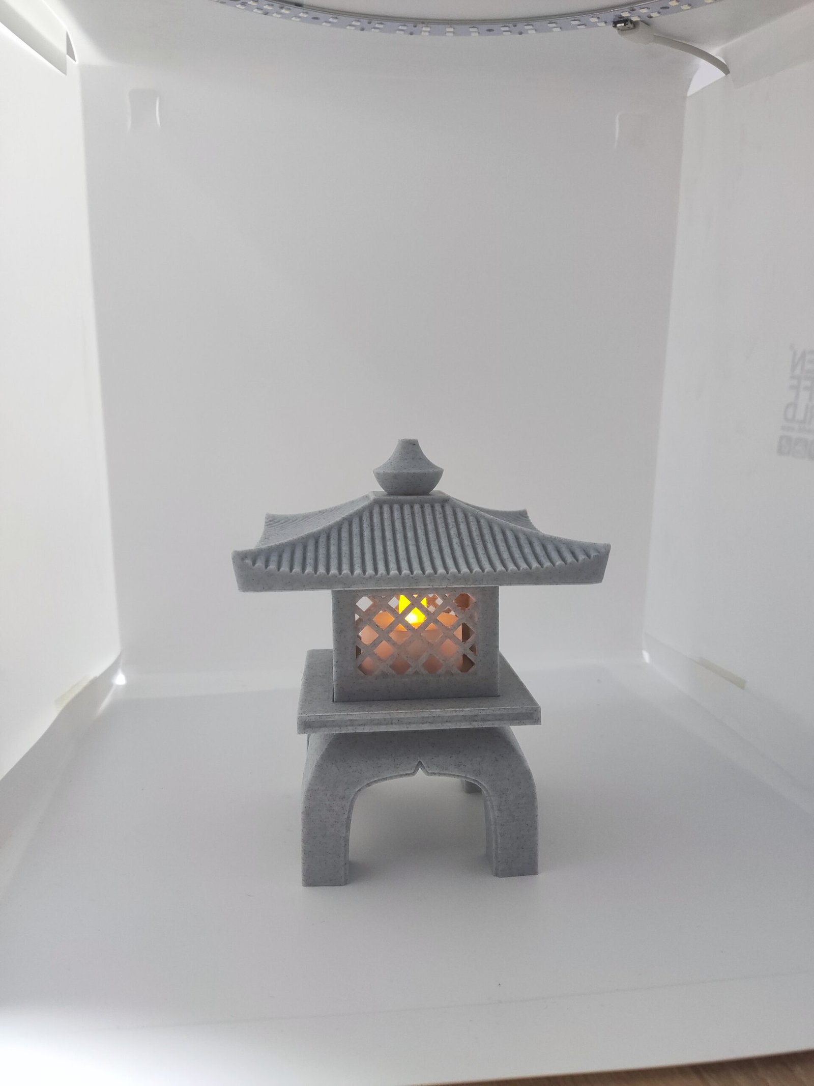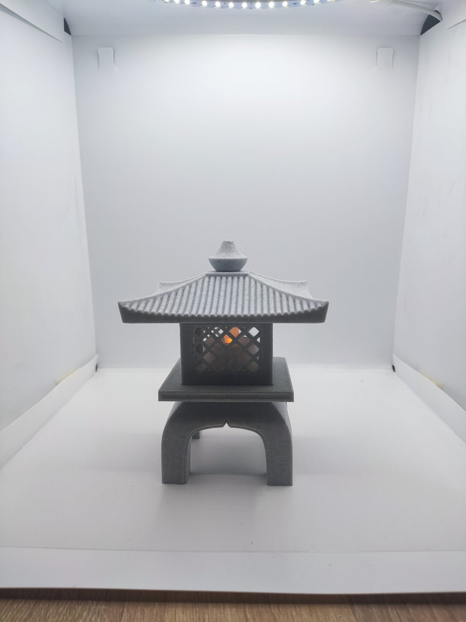 Iluminación Suave y Acogedora: El diseño hueco en el centro alberga una pequeña fuente de luz que proyecta un brillo cálido y parpadeante a través de las ventanas enrejadas.